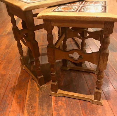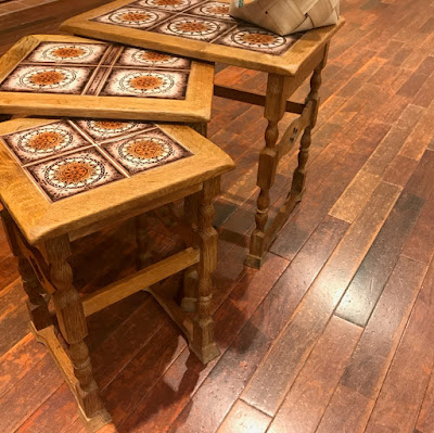 オークのネストテーブルですが、ブラウンのタイルに合わせた落ち着いた色味となっているので、北欧家具とも合わせやすいデザインです。