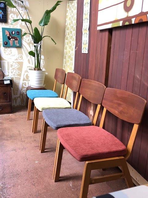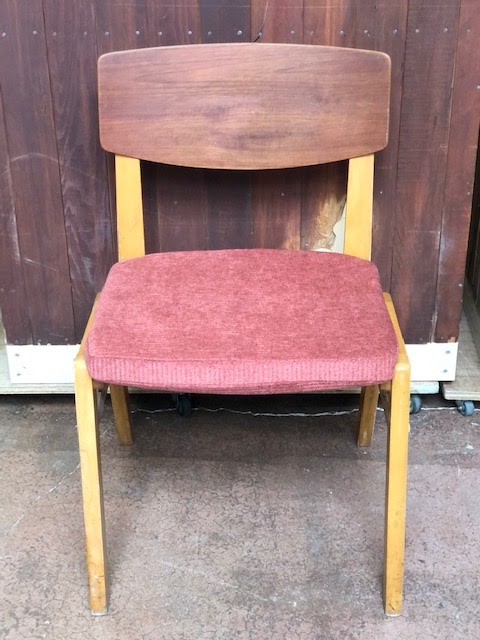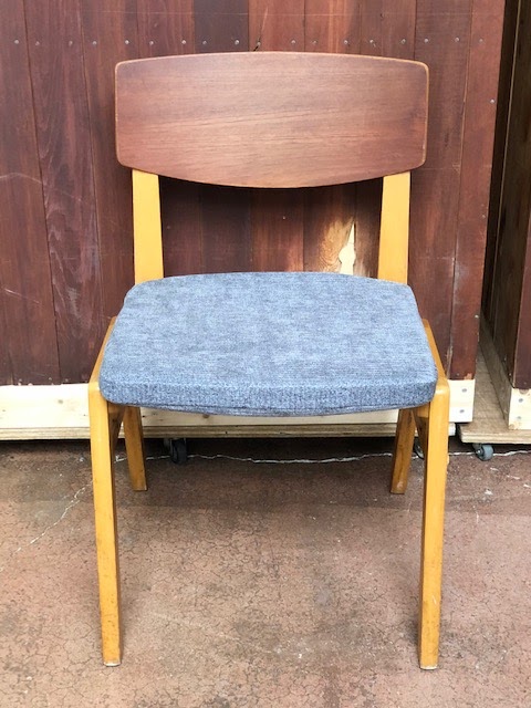 座面にウレタンを入れてカバーリングしたスタッキングチェアに生まれ変わっております。