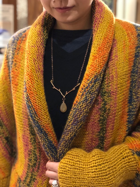 天然素材の石や木、そして葉っぱが主役のネックレスやピアス。