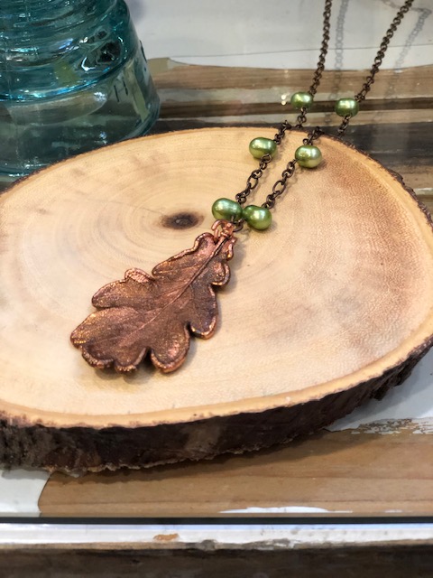 天然素材の石や木、そして葉っぱが主役のネックレスやピアス。