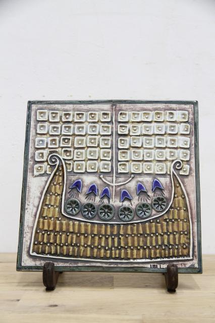 [GUSTAVSBERG/Lisa Larson] リサラーソン 陶板 UNIK SKEPP 船 ヴィンテージ 1961年