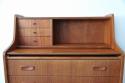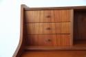 北欧デンマーク買付のライティングビューローです。ビューローとは、書棚や引き出しなどの収納家具とデスクが一体化した家具のことをいいます。これは天板を手前に引き出すことでデスクとして使用することが出来るタイプのデザインです。その天板を持ち上げると鏡が付いている仕様です。