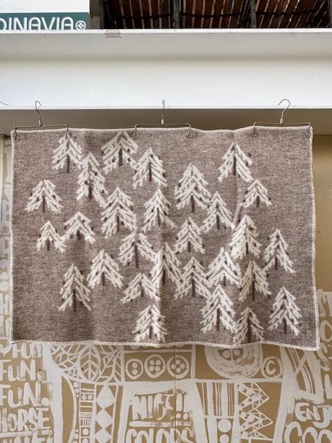 フィンランドの静かな冬の森が描かれたKUUSIブランケット。落ち着いたカラーリングでおうち時間もリラックスできそうです。