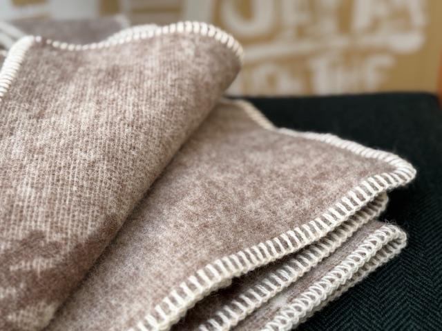 ウール100%素材の生地を起毛させて作るフェルトタイプのブランケットは、厚みがあり暖かさも格別。軽いので毛布の代わりにかけて使ったり、天気のいい日は外に広げて寝転がるのも気持ちがいいものです。