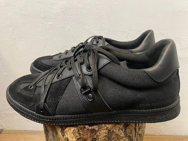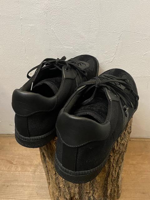 軍物スニーカーの定番でもあるドイツ軍のジャーマントレーナーをモディファイしたスニーカー。しっかりとした牛革と厚地のナイロンを使用し、EGO TRIPPINGなりの解釈でデザイン性の強いジャーマントレーナーに仕上げられています。
