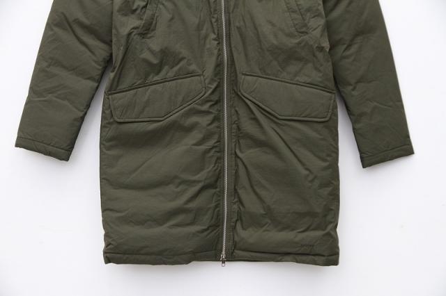 ダブルジップ仕立てのロングアウターです。ナイロン素材の中にダウンが多く詰め込まれた本格派。袖口は防寒用にリブ付で東北の寒さに対応可能です。ウエストは内側で絞れる機能付きでスマートなシルエットにも。驚きの軽さにより肩こりの心配もありません。