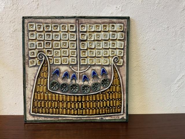 [GUSTAVSBERG/Lisa Larson] リサラーソン 陶板 UNIK SKEPP 船 ヴィンテージ 1961年 W247030003011
