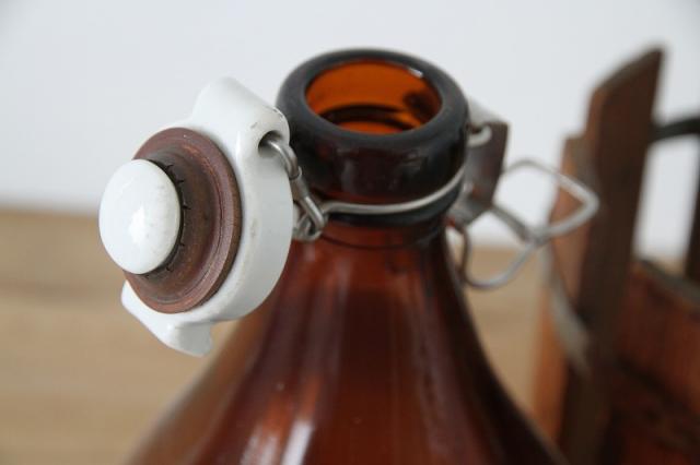 木の枠に入ったヴィンテージのガラスボトル瓶です。