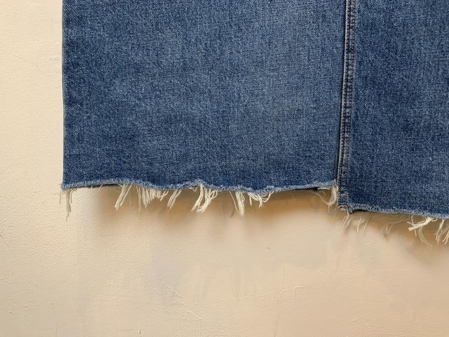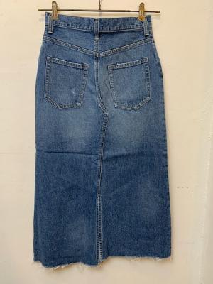 パンツをリメイクしたようなデザインとなっており、少し控えめに施されたダメージ加工がさりげないアクセントになっています。少し長めの丈感とコンパクトなストレートシルエットで、カジュアルながらも上品で大人の女性が穿きやすいアイテムに仕上がっております。