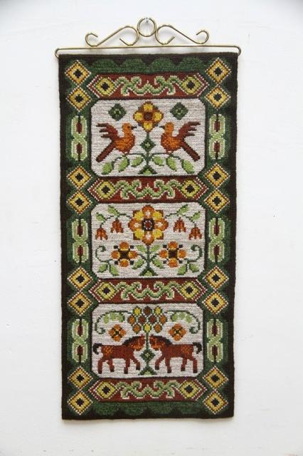 スウェーデンの伝統工芸であるツヴィスト刺繍のタペストリーです。