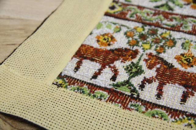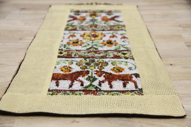 ツヴィスト刺繍の特徴である太い糸と立体感、そして幾何学模様、自然をモチーフにした、鳥や花、馬などが描かれております。