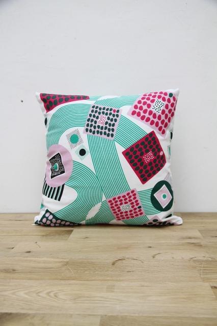 ミッドセンチュリーな曲線的なデザインと、鮮やかな色彩が楽しいMezzaluna Studioのクッションカバーです。すべてハンドメイドで作られています。