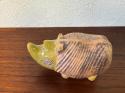 このサイは、丸みを帯びたフォルムと力強い存在感があり、どこかユニークで可愛らしさも感じさせます。リサ・ラーソンの作品らしい手作り感があり、釉薬の風合いが一つ一つ異なるため、どの個体も微妙に違った表情を楽しむことができます。