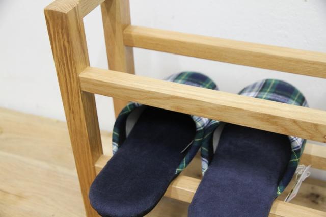 北欧家具にもよく使われる耐久性があり高級木材の一つとされるオークの無垢材を使用したスリッパラックです。