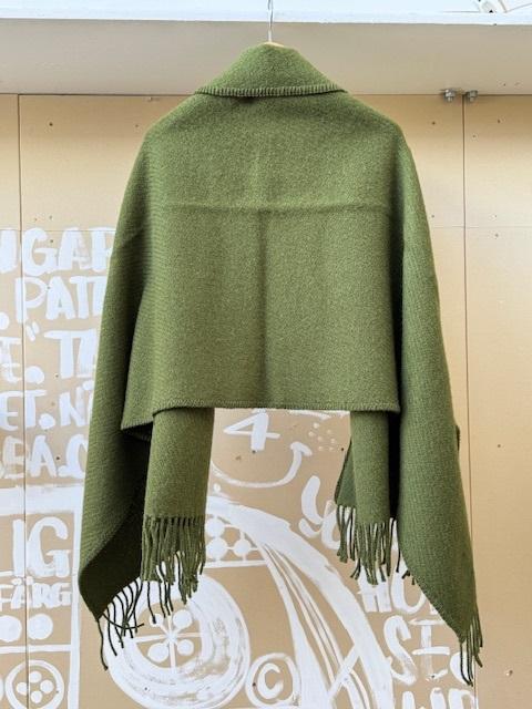 素材は100%ピュアニューウール(一年以内に刈り取られた羊毛)で、羽織るとその軽さと暖かさに驚かされます。