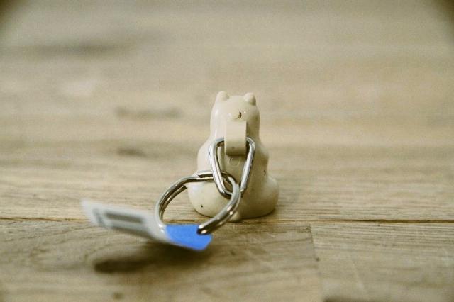 フィンランドの白クマ貯金箱をそのまま小さくしたキーホルダー。
