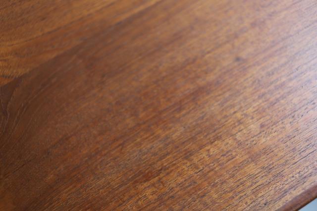 チーク家具の魅力は、製造から60年近く経過していても、このような質感を楽しむことができ、自分で愛着を持って”育てる”ことができるところです。日々のお手入れについては、ハワード社/オレンジオイル 又は フィーデンワックスでのお手入れをお勧めしています。”使う前が一番美しい”、のではなく、”使いながら暮らすことが楽しい”を体感していただけると嬉しいです。