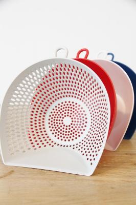 赤・白・青のトリコロールカラーのボウルとザルのセットで、キッチンが華やかに彩られます。