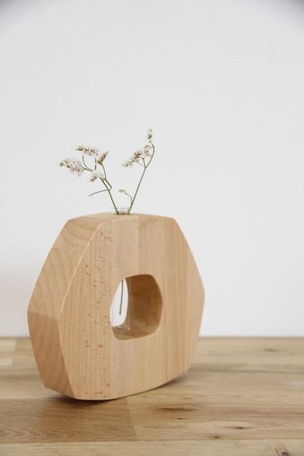 自然の木を使ったユラユラ揺れるナチュラルな一輪挿し。