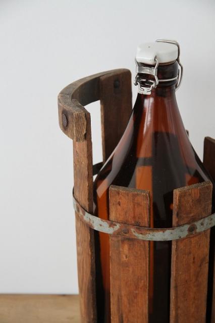 木の枠に入ったヴィンテージのガラスボトル瓶です。