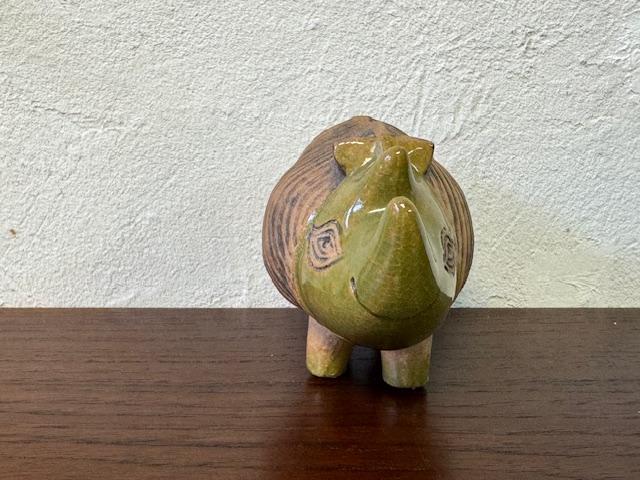 このサイは、丸みを帯びたフォルムと力強い存在感があり、どこかユニークで可愛らしさも感じさせます。リサ・ラーソンの作品らしい手作り感があり、釉薬の風合いが一つ一つ異なるため、どの個体も微妙に違った表情を楽しむことができます。