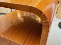 素材にはエルム材を使用。やわらかな木目とあたたかみのある色合いが魅力で、経年による深みのある風合いも楽しめます。丸みを帯びた天板のラインやすっきりとした脚部のバランスが美しく、1940年代らしい上品で落ち着いた佇まいです。