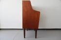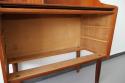 北欧デンマーク買付のライティングビューローです。ビューローとは、書棚や引き出しなどの収納家具とデスクが一体化した家具のことをいいます。これは天板を手前に引き出すことでデスクとして使用することが出来るタイプのデザインです。その天板を持ち上げると鏡が付いている仕様です。