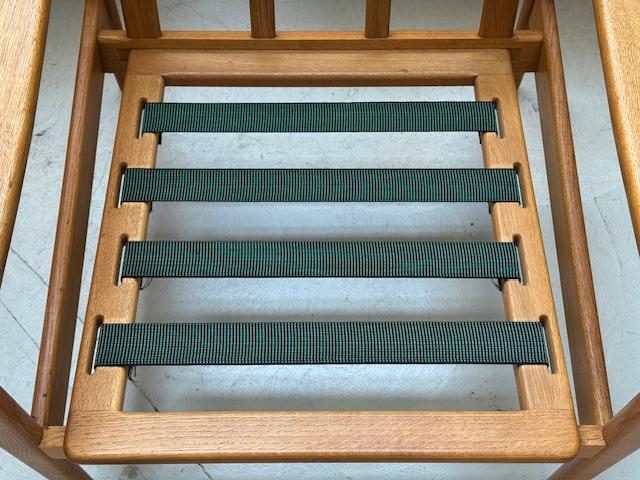 ・座面クッションのウレタン、座面下のベルトは経年劣化のため、新しいものに取り替えております。そのため、クッションは写真より現物の方がふっくらと厚みがございます。