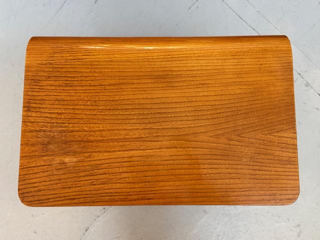 素材にはエルム材を使用。やわらかな木目とあたたかみのある色合いが魅力で、経年による深みのある風合いも楽しめます。丸みを帯びた天板のラインやすっきりとした脚部のバランスが美しく、1940年代らしい上品で落ち着いた佇まいです。
