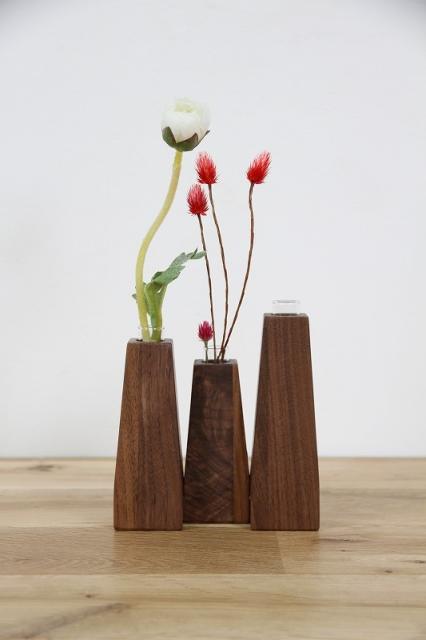 高さの違う3つの一輪挿しが連なったデザインで、