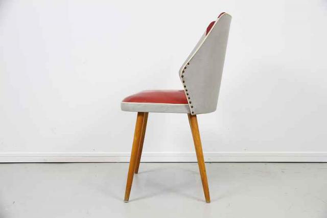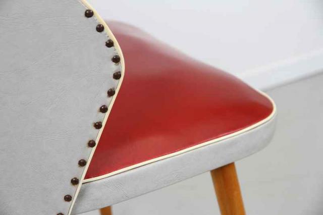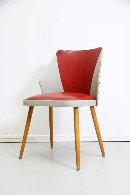 ドイツ製50'sヴィンテージのレトロなカクテルチェアです。ミッドセンチュリーの時代らしく曲線を描いた美しいフォルムが特徴的なチェア。インテリアとしても映える赤とグレーの配色と、美しく伸びる脚。ダイニングチェアやデスクチェアなど、幅広くお使い頂けます。