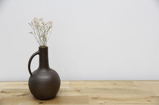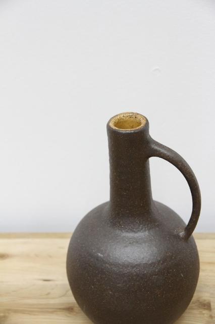 上部は細く下部はぽってりとまあるい、色が茶系でシンプルなデザイン。