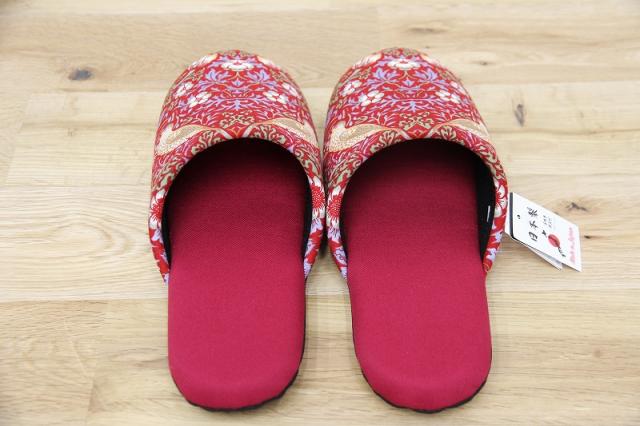 19世紀イギリスで活躍したデザイナー、ウィリアム・モリスのデザインした『いちご泥棒』プリントのファブリックを使用したソフトスリッパです。