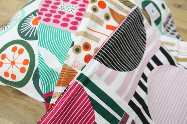 ミッドセンチュリーな曲線的なデザインと、鮮やかな色彩が楽しいMezzaluna Studioのクッションカバーです。すべてハンドメイドで作られています。