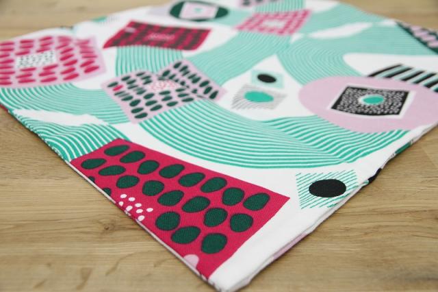 ミッドセンチュリーな曲線的なデザインと、鮮やかな色彩が楽しいMezzaluna Studioのクッションカバーです。すべてハンドメイドで作られています。