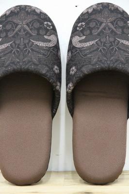 19世紀イギリスで活躍したデザイナー、ウィリアム・モリスのデザインした『いちご泥棒』プリントのファブリックを使用したソフトスリッパです。