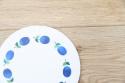 美しいブルーのグラデーションで瑞々しく描かれた、コロンと美味しそうなプラム。