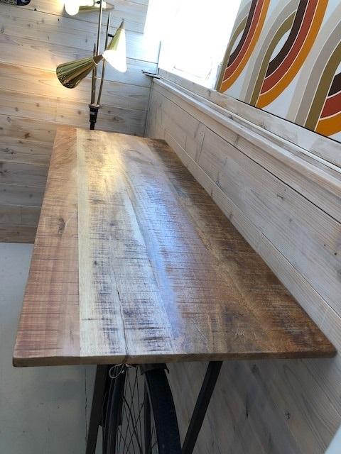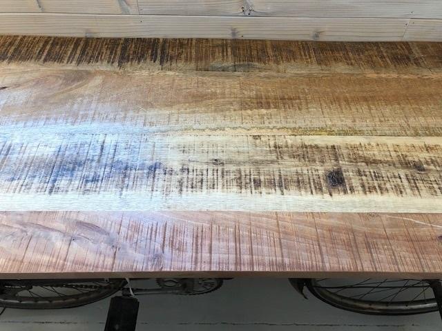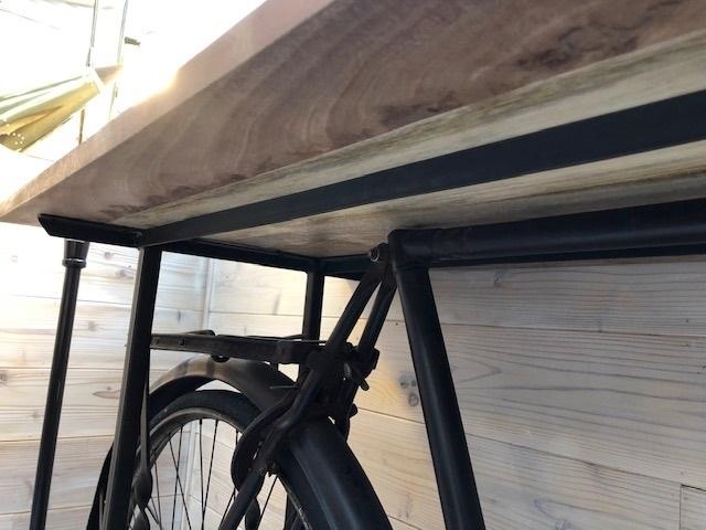 長年使い続けてきた味わい深い自転車に天然木を組合せたアップサイクルなコンソールテーブル。