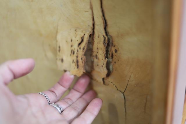 ●裏面の一部、木肌がめくれています。表に響くような状態ではありません。詳細写真でお確かめください。