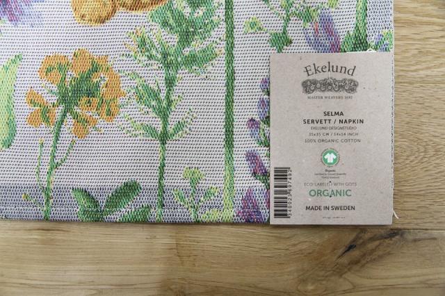 良質なオーガニックコットン100%で織り上げられたスウェーデン伝統のファブリックで、食事のナプキンとして作られたサイズ。