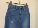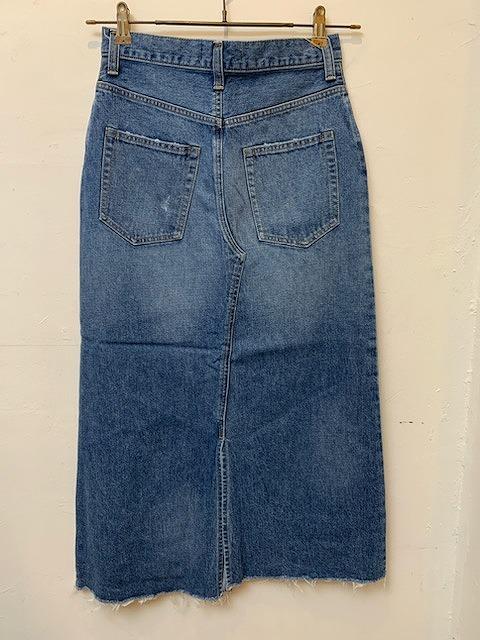 パンツをリメイクしたようなデザインとなっており、少し控えめに施されたダメージ加工がさりげないアクセントになっています。少し長めの丈感とコンパクトなストレートシルエットで、カジュアルながらも上品で大人の女性が穿きやすいアイテムに仕上がっております。