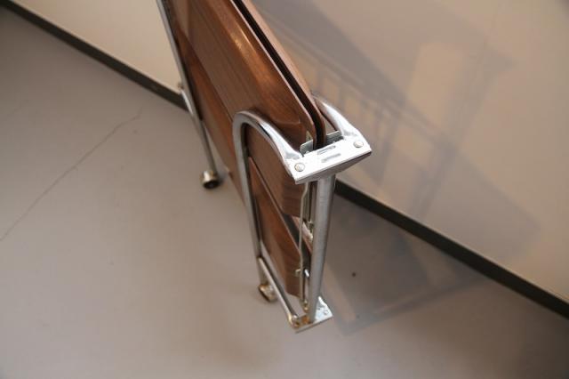 クロームのフレームと木目の棚板という、当時らしい素材の組み合わせが魅力的な一台です。