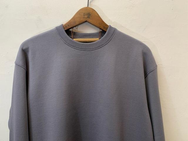 関西地方にある、創業約100年の吊編み機工場に製作して頂いた生地を使用しています。23SSまで展開していた[Rec:Supima]シリーズの素材をそのまま使用しておりますが、繊維の復元加工を半分にし、その代わりにバイオ加工を施すことでスムースな手触りを残しながらも、少しフェードしたような見た目に仕上げました。表面の光沢は、加工を半分にすることで少し軽減しているため、よりカジュアルで着用しやすくしております。