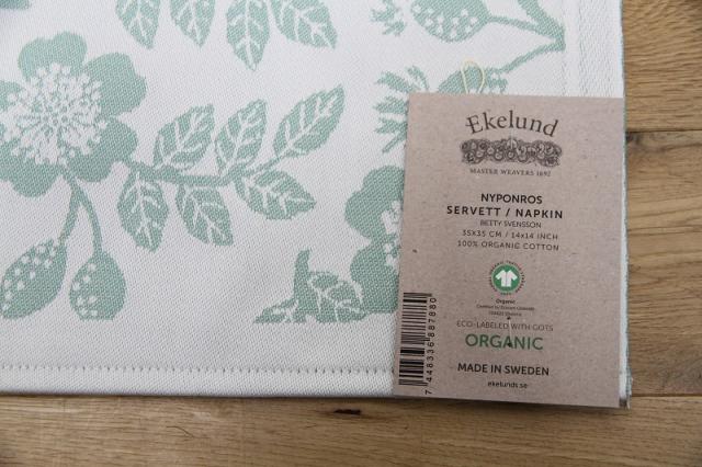 良質なオーガニックコットン100%で織り上げられたスウェーデン伝統のファブリックで、食事のナプキンとして作られたサイズ。