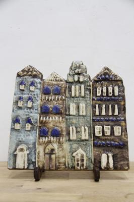 この陶板は、スウェーデンのストックホルムにあるガムラスタン(Gamla Stan)という歴史的な地区を題材にした作品です。