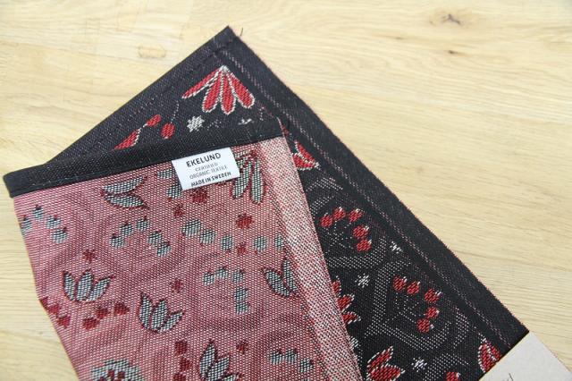良質なオーガニックコットン100%で織り上げられたスウェーデン伝統のファブリックで、食事のナプキンとして作られたサイズ。