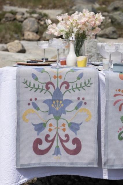こちらの色鮮やかなテキスタイルは、スウェーデンの老舗ブランド、エーケルンド社のタオル。