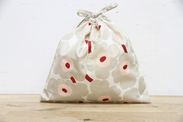 ケシの花をモチーフにした大きい花柄が特徴的でマリメッコの代表的なウニッコデザインの巾着ポーチ。