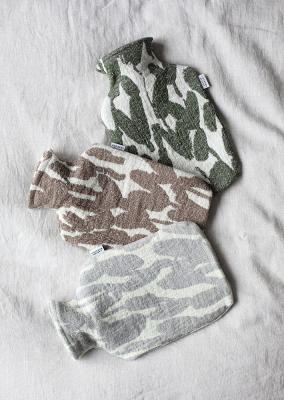 ウール100%素材の生地を起毛させて作るフェルトタイプの湯たんぽカバーは、厚みがあり暖かさも格別。