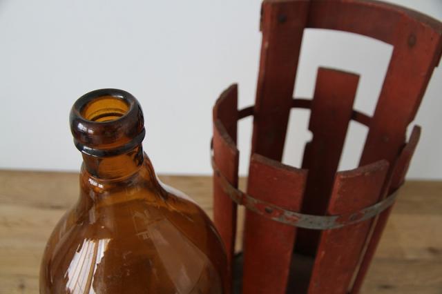 木の枠に入ったヴィンテージのガラスボトル瓶です。